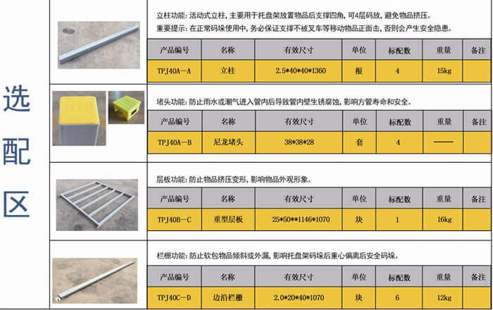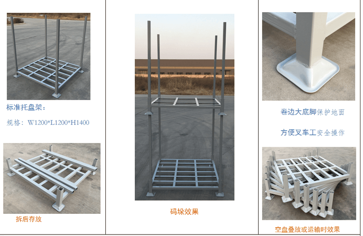 40C型托盘架 产品介绍:本产品主要优点是与叉车配合实用,可充分利用仓库高度空间。降低仓储费用,管理和经营费用。主要用于软袋子包装和纸箱包装物品存放和颗粒物品存放防止积压,常用于冷链、饲料、塑料颗粒仓储及物流。